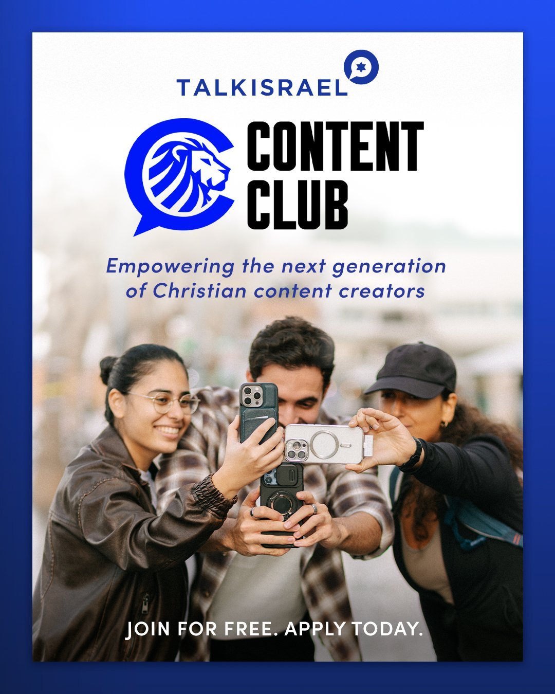 TalkIsrael x Generation Zion Content Club will train a cohort Christian content creators to become a living bridge between Israel and the Christian community on social media by amplifying their voices and inspiring positive conversations about Israel online. create content on social media and inspire positive conversations about Israel.
